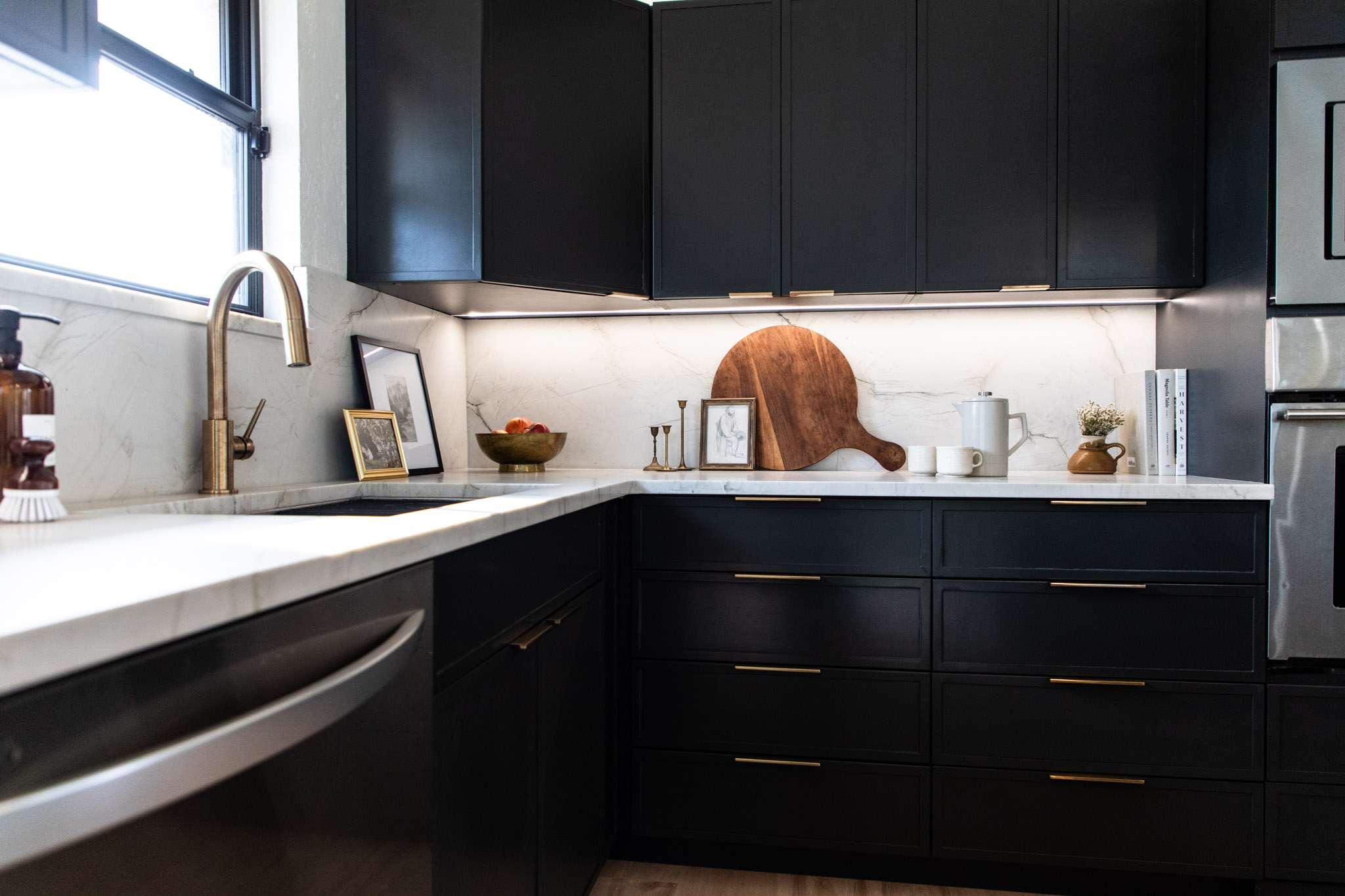Micah helped design and build cabinets for our kitchen addition. It’s hard to find a cabinet that has a modern style and is also well made. Olive and Ash provided both. The Pecan finish on the hardwood doors was perfect for our design.